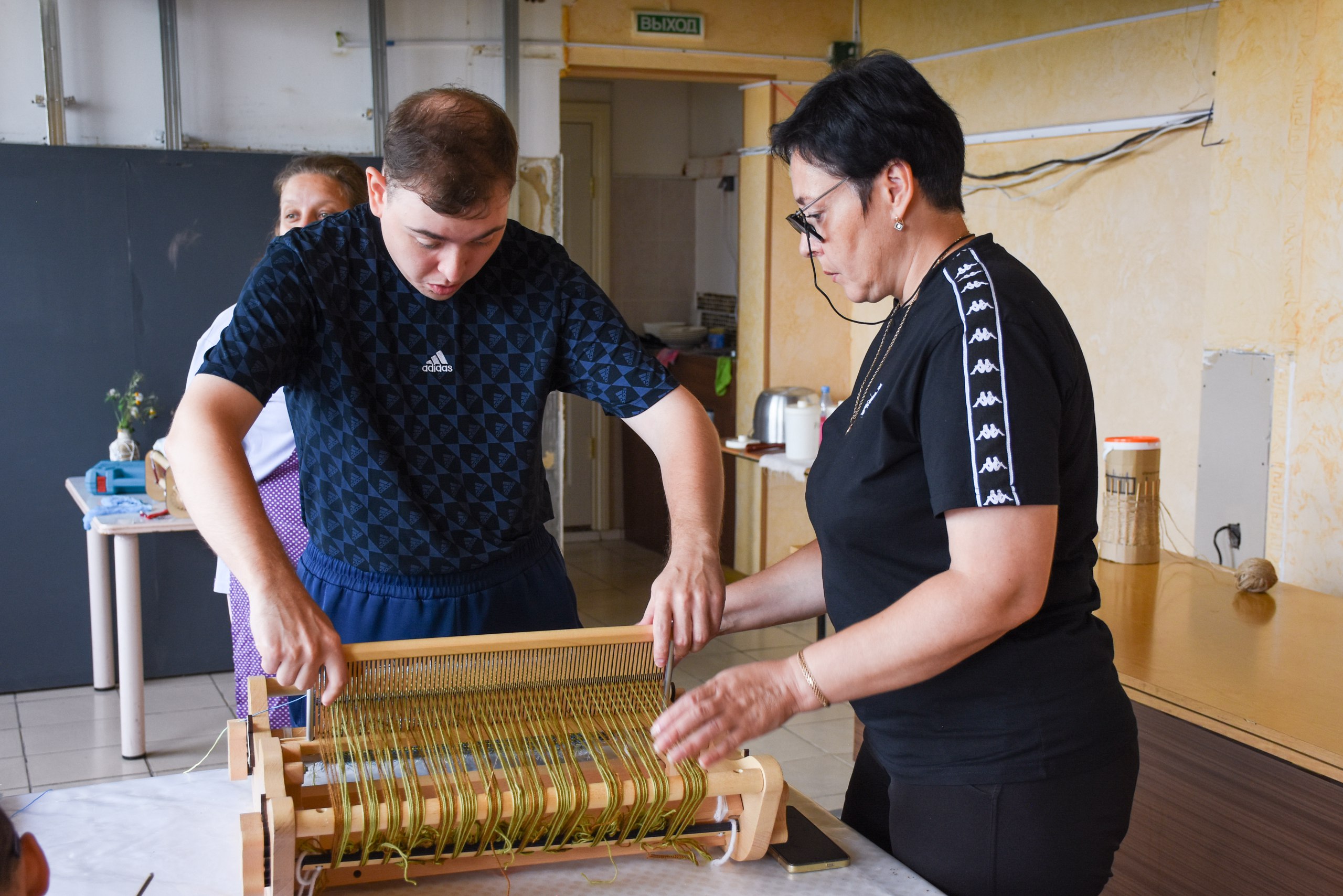 На базе МБУК «Дворец культуры» из-под ткацкого станка и рук ребят вышло первое изделие - дорожка на кухонный стол в этой деятельности особенно трудно далось освоение заправки ткацкого станка, так как требовало аккуратности и усидчивости.