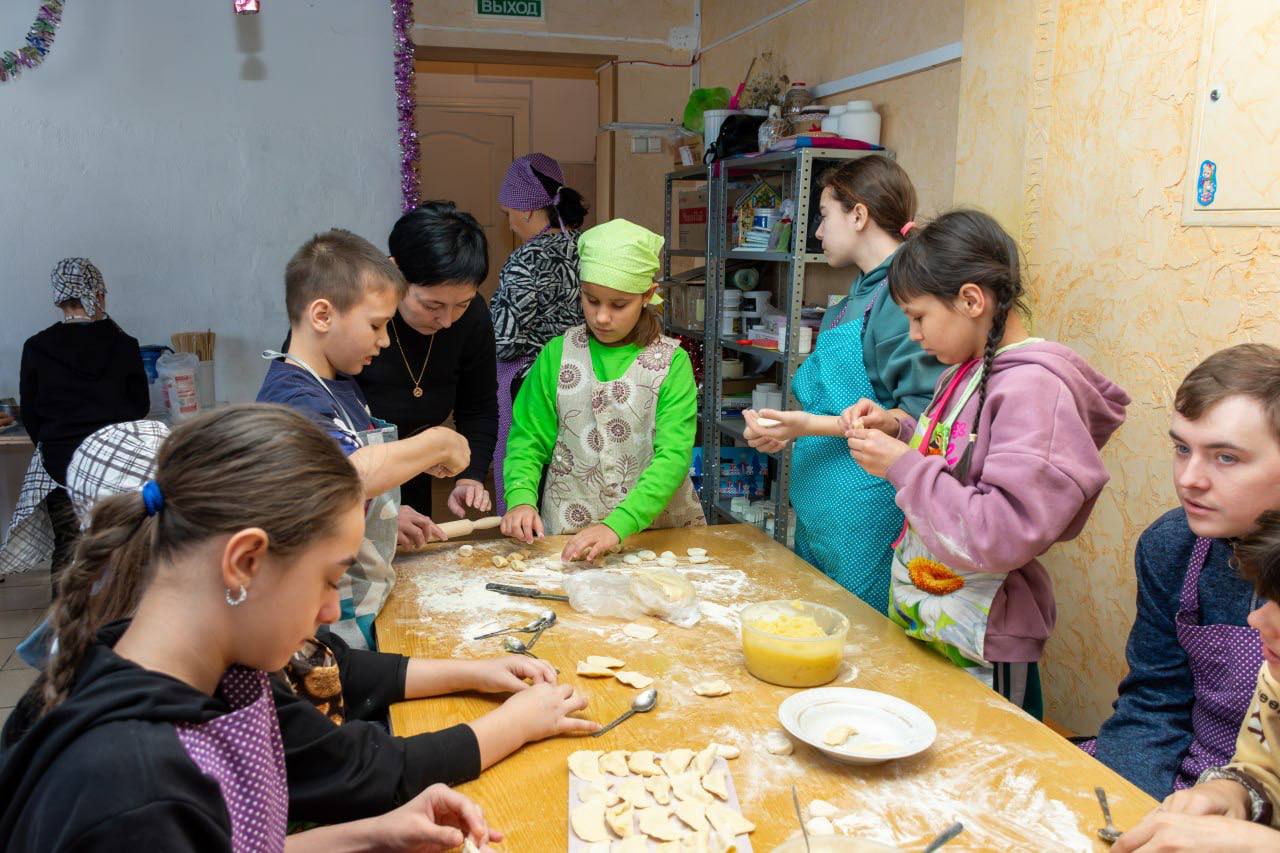 05 января во Дворце культуры состоялась Новогодняя встреча участников программы «Доступный труд» и воспитанников Детского дома города Амурска. Совместная лепка Вареников с картошкой и приготовление сосисок в тесте дала возможность познакомиться поближе всем участникам встречи.