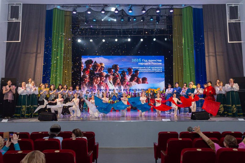 1 февраля в Большом зале Дворца культуры состоялся праздничный концерт, посвящённый открытию Года единства народов России и празднованию 63-летия со Дня основания Амурского муниципального района. 2026 год призван укрепить дружбу и взаимопонимание между всеми, кто считает Россию своим домом. В этот день в зале собрались представители разных поколений, разных профессий, разных национальностей, но всех нас объединяет любовь к нашей Родине, к нашему дому под названием Амурский район!