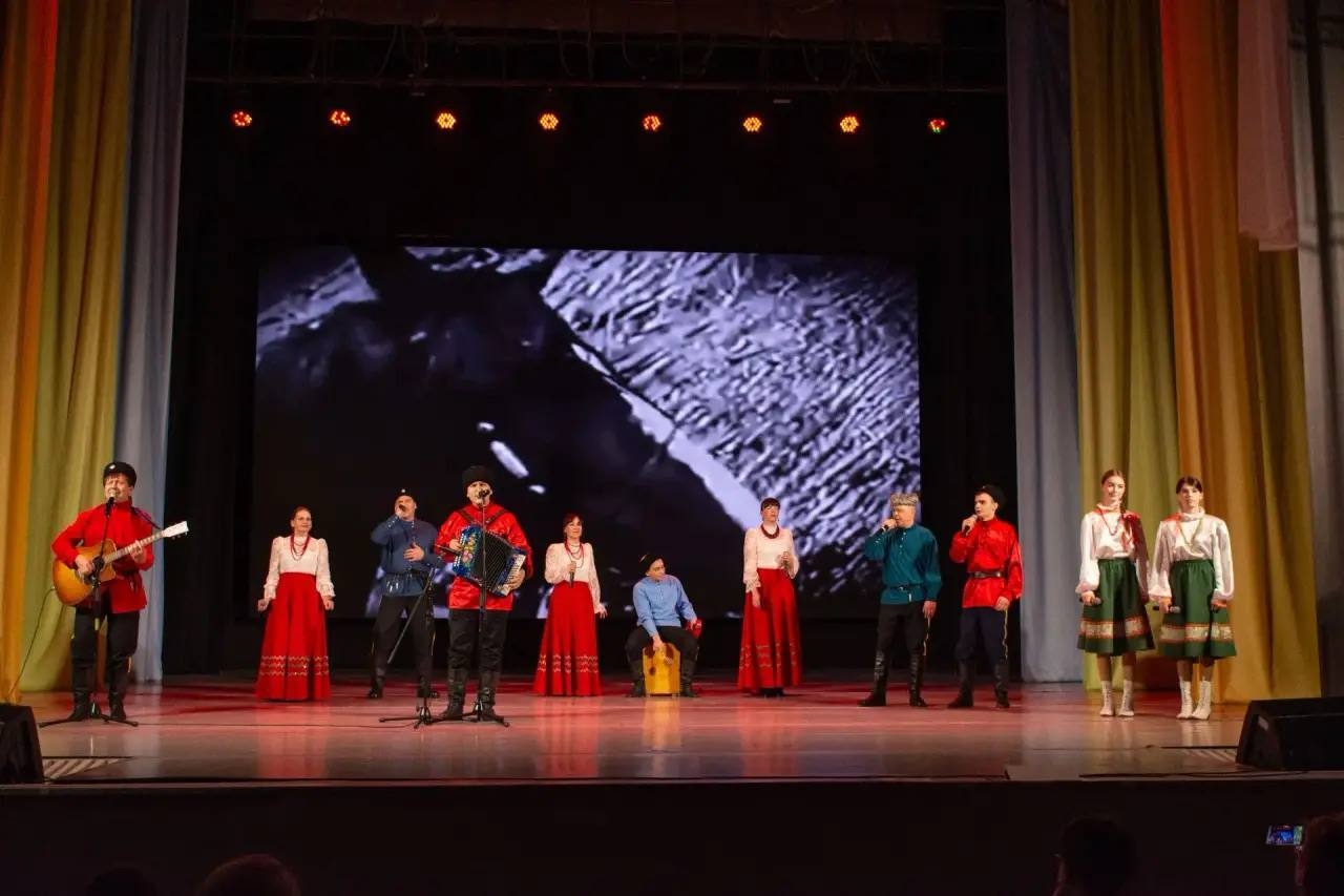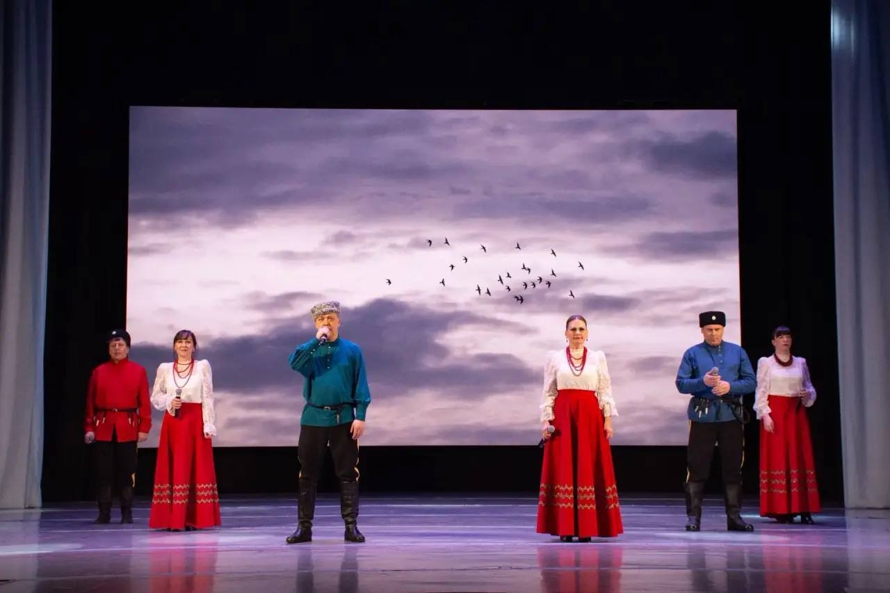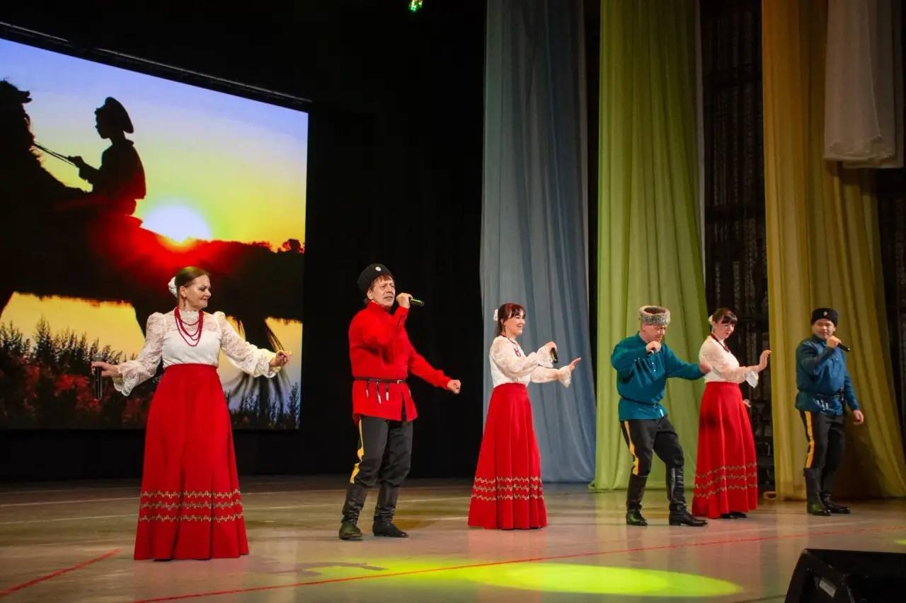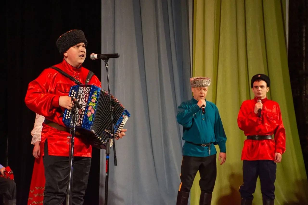 В концертную программу вошли казачьи народные песни, авторские произведения, основанные на искренней любви к Родине, а также выступление Образцового коллектива народного танца «Радость» и казачьего военно-патриотического объединения «Рысь».