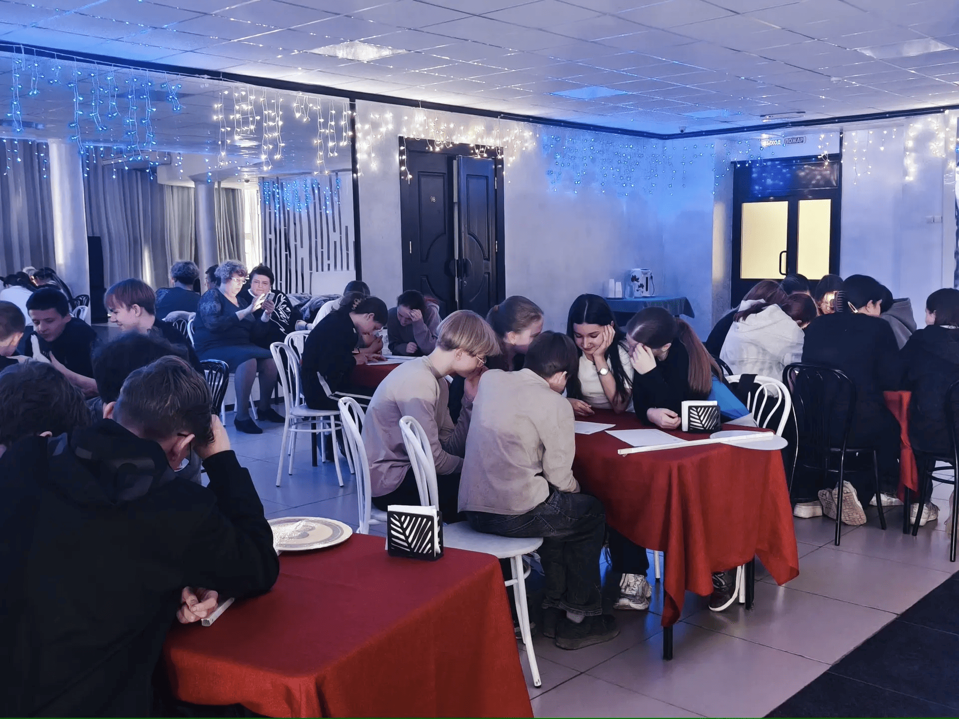 Пицца и горячий чай подкрепили интеллектуалов в перерыве.