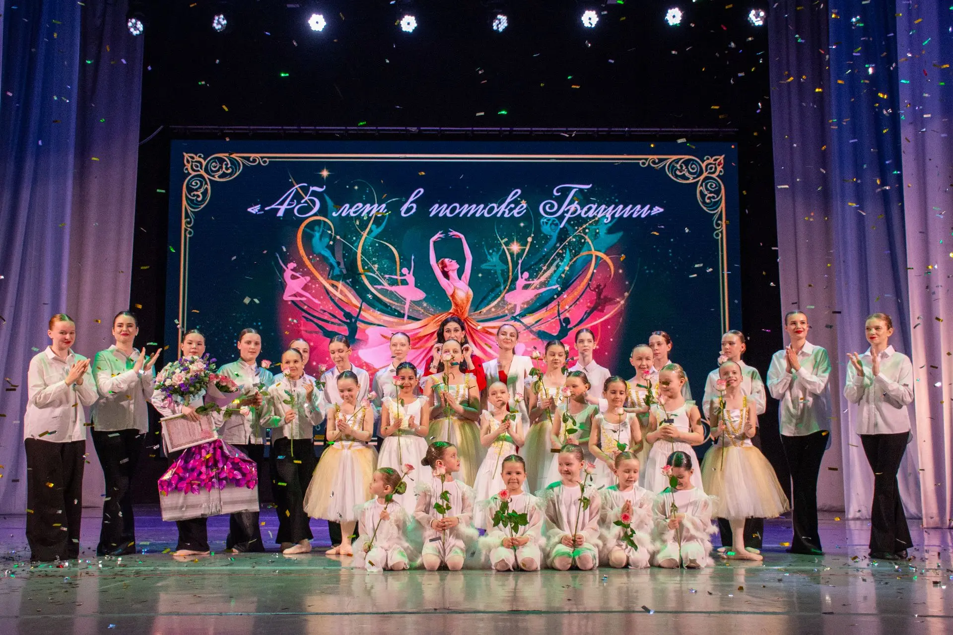 25 апреля в Большом зале дворца культуры состоялся настоящий праздник - праздник таланта, кропотливого труда и вдохновения! И повод более чем торжественный! 45 лет свою любовь дарит зрителям детский Образцовый хореографический коллектив «Грация» им. Нины Игоревны Рековой! Балетмейстер Анастасия Алексеевна Бояркина, хореограф Дарья Ивановна Итименева.
